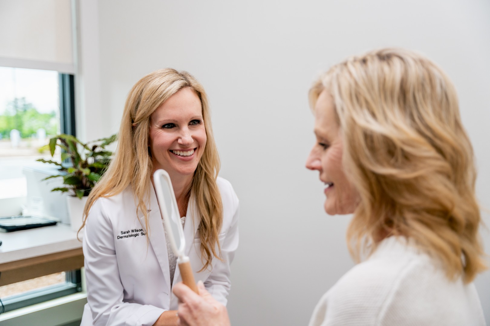Dr. Sarah Wilson is a board-certified cosmetic dermatologist and Mohs surgeon. She is honored to join the Carrollton community and to offer new surgical and cosmetic services for the patients at West Georgia Dermatology. She has a passion for all things skin and is committed to helping you look and feel your absolute best. She has completed two accredited fellowships, one in micrographic surgery and dermatologic oncology (“Mohs”), and the other in cosmetic dermatologic surgery, at Northwestern Memorial Hospital in Chicago. During her two years of training at Northwestern, Dr. Wilson completed over 3,000 cases of Mohs surgery. She completed her dermatology residency in Atlanta at Emory University where she served as chief resident. Prior to residency, she attended the Medical College of Georgia in Augusta where she was elected member of the prestigious AOA honor society and graduated in the top 10 percent of her class. She completed her undergraduate degree at Georgia Tech where she graduated with Highest Honors. Dr. Wilson has authored multiple publications in the areas of cosmetic dermatology, skin cancer, and patient quality of life. Dr. Wilson is a Georgia native and is thrilled to have returned home! She and her high school sweetheart, Austin, have three young daughters, Mary, Anna, & Emily (and a goldendoodle, Abby). They enjoy spending their free time at the lake with friends and family, and exploring new parks, restaurants, and playgrounds.